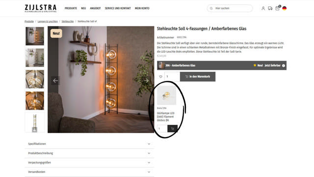 - Wähle die Lampe aus, die du bestellen möchtest.