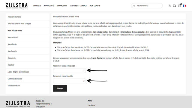 - Parcourir avec le client : Affichez les produits sans montrer votre prix d’achat.