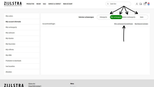 Vanaf nu bepaal jij zelf welke prijzen zichtbaar zijn op de productpagina’s. Kies voor inkoopprijs, mijn verkoopprijs, advies verkoopprijs of geen prijsweergave. Zo kun je niet alleen efficiënter werken, maar ook samen met jouw klant door de webshop bladeren – zonder dat zij jouw inkoopprijzen zien.