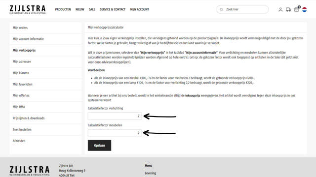 5. Vul jouw eigen calculatiefactor in en klik Opslaan.