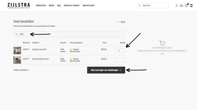 Het gebruik van Snel Bestellen is heel eenvoudig. Volg deze stappen: