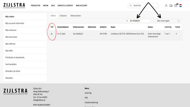 Het opzoeken van de track & trace link is heel eenvoudig. Volg deze stappen:
